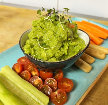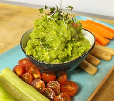 Dip de guacamole casero, zanahoria, cherrys y pepino.