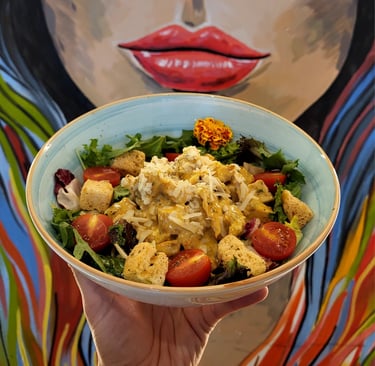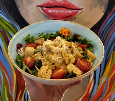 Mix de hojas verdes, Pollo, Croutons, Queso Parmesano y Salsa César.