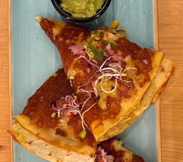 Nuestras quesadillas se preparan con tortillas de trigo, el relleno contiene un mix de quesos y pico de gallo. Para completarlas puedes elegir una de las siguientes opciones: