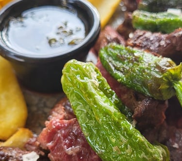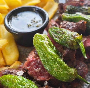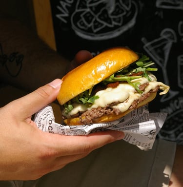 Hamburguesas 100% caseras de entraña y vacío con delicioso pan brioche. ¡Todas acompañadas con patatas!