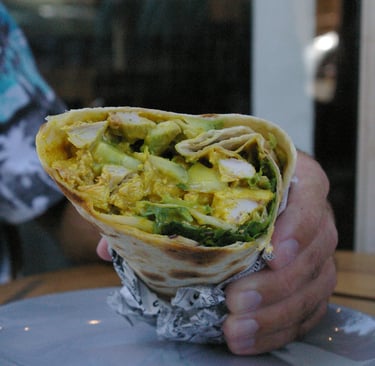 Crema de Curry y Mango, Pepino, Aguacate y Lechuga.