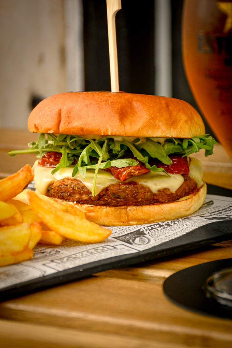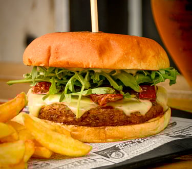 Queso Emmental, Tomate Seco, Rúcula, Mayonesa de Trufa.